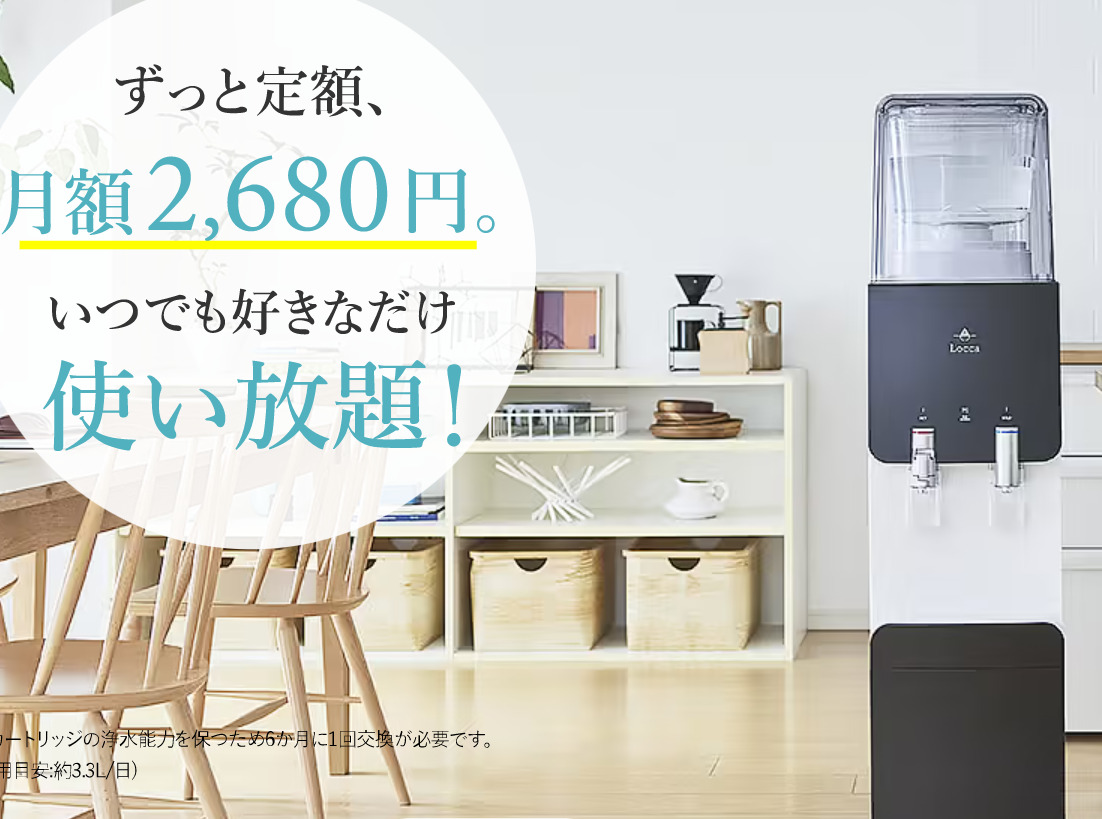 Loccaはレンタル料や配送料がすべて月額2,680円の中にコミコミで、お水も水道水を使うのでランニングコストが安く抑えられました!